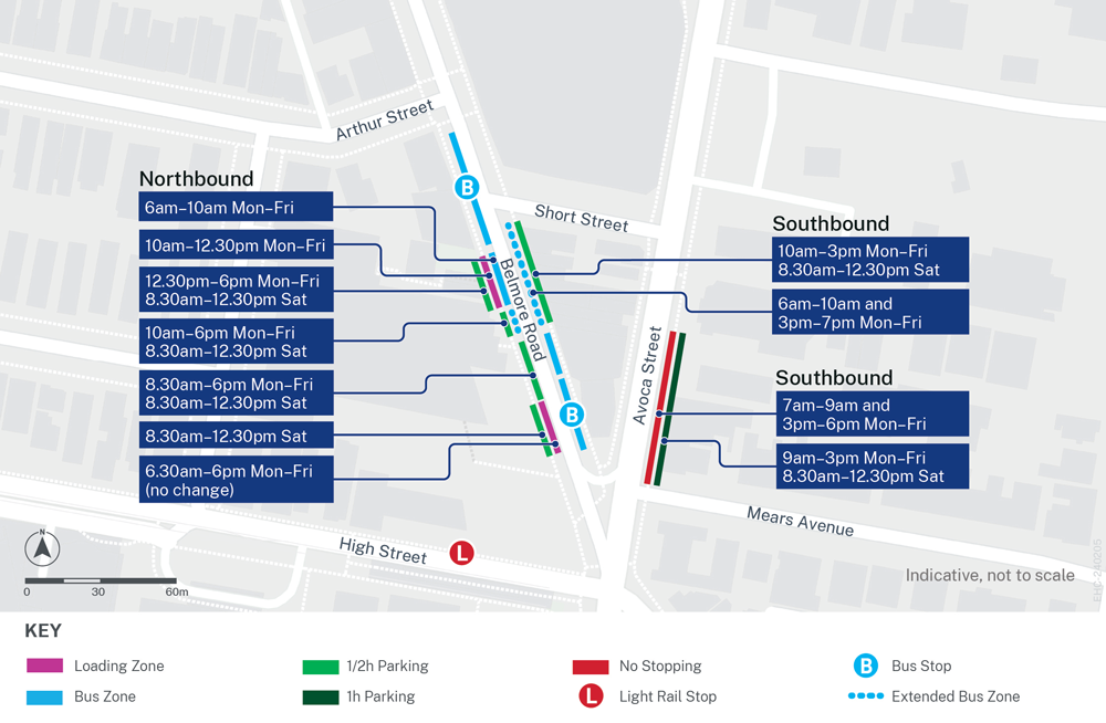 Parking and bus changes on Belmore Road were approved by the Randwick Traffic Committee in April 2025. Parking changes on Avoca Street and the installation of a new signalised pedestrian crossing were approved by Transport in March 2025.