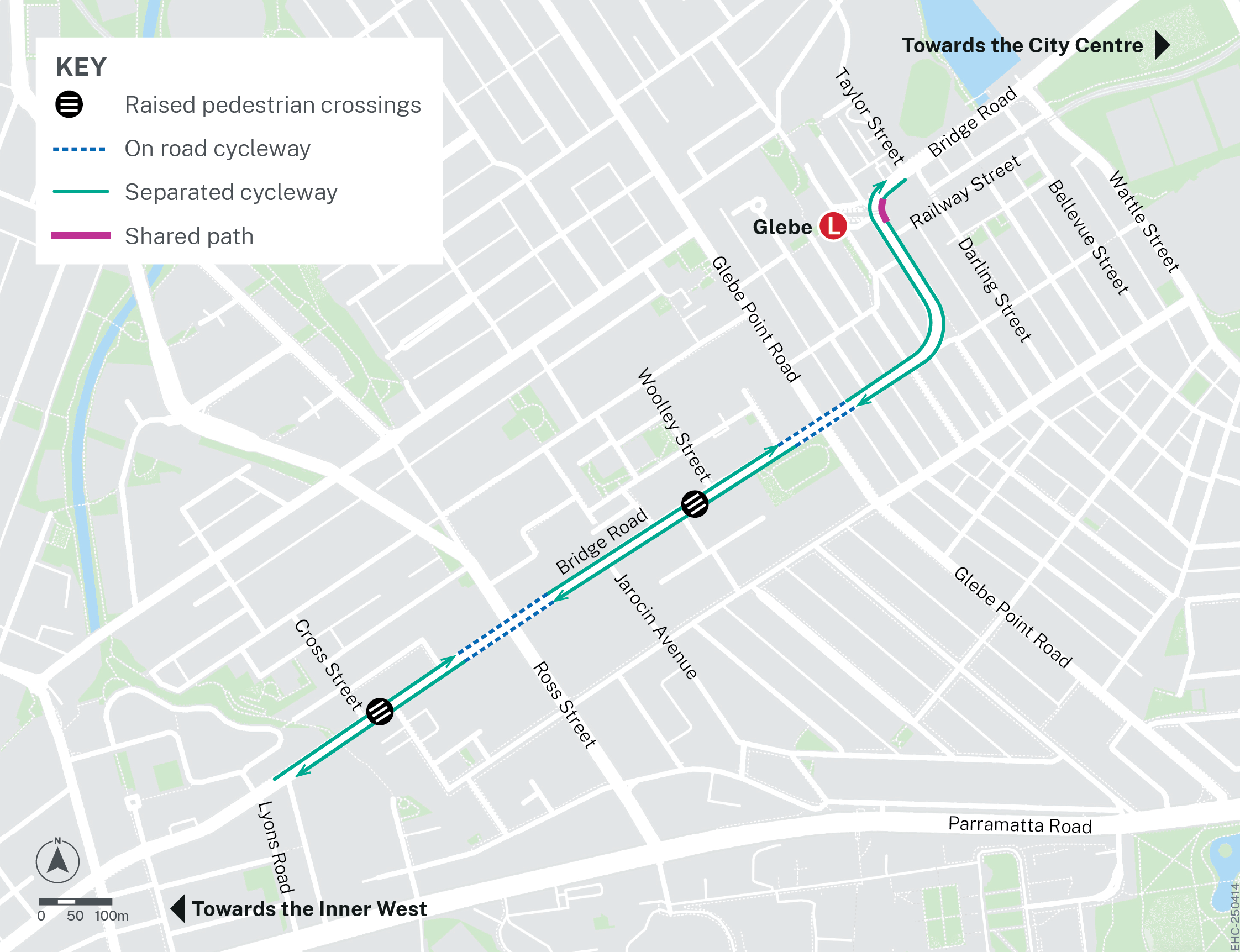 Image: Indicative map, showing the location of the Bridge Road Cycleway, Glebe. View larger version here (PDF, 190.11 KB).